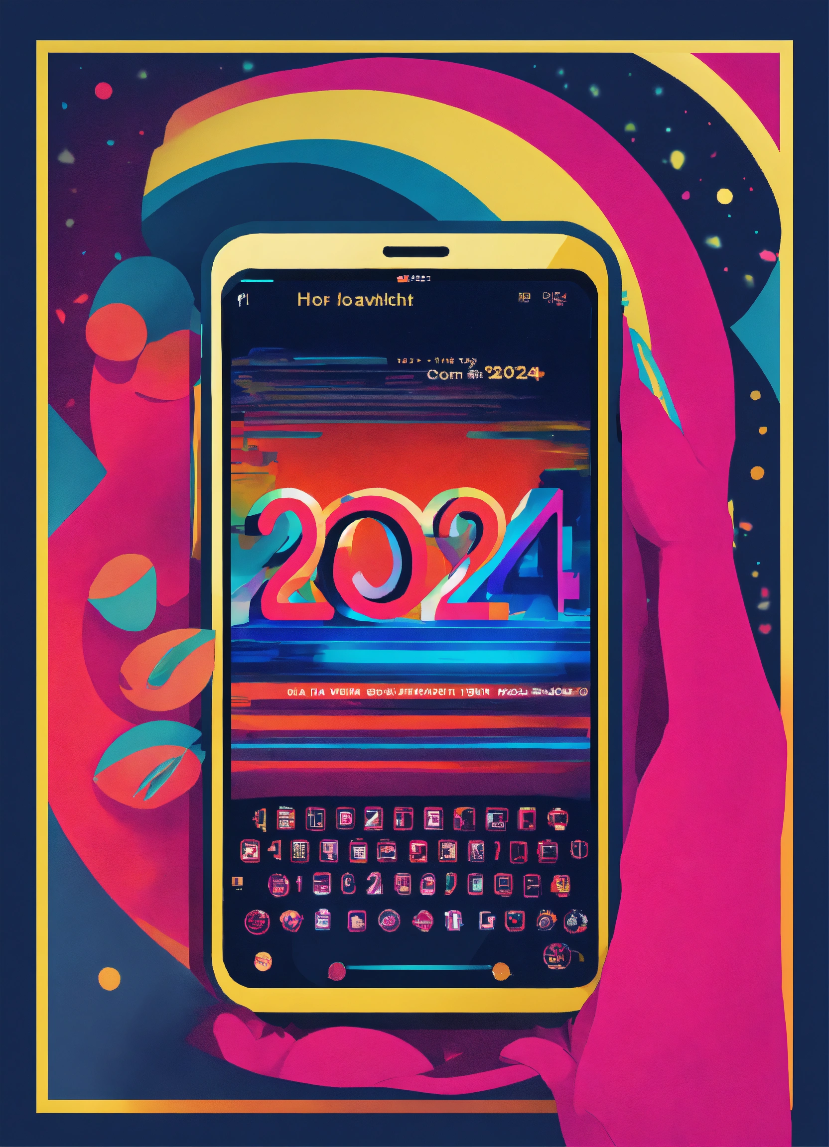 Um prompt "a female hand holding a cellphone with the text coming up 2024 vibrant with an eye in the background" com o endereço de uma das imagens: